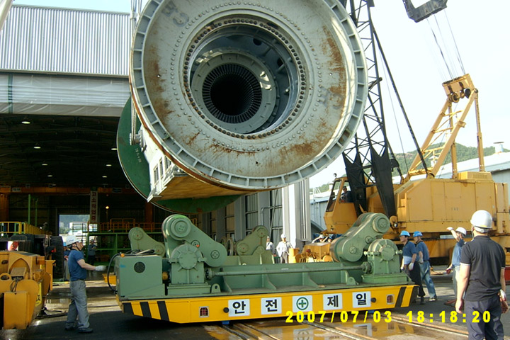 300ton Transport 300Ton 의 발전기를 싣고 레일을 따라40M 이송 할 수 있다. Motor 구동4.5MW-13ML-0.55MH
